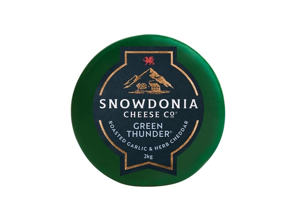 Snowdonia Green Thunder je výjimečný čedar z Walesu, který spojuje bohatou, krémovou strukturu s pikantními tóny česneku a jemných bylinek. Zraje přirozeně a je obalen v typickém voskovém obalu, který zachovává jeho aroma a vláčnost.