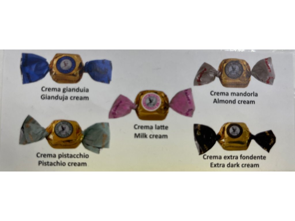 Pralinky servírujte při pokojové teplotě – čokoláda tak krásně změkne, naplno uvolní vůni a jednotlivé krémy (gianduia, mandlový, pistáciový i extra hořký) vyniknou v plné chuti.