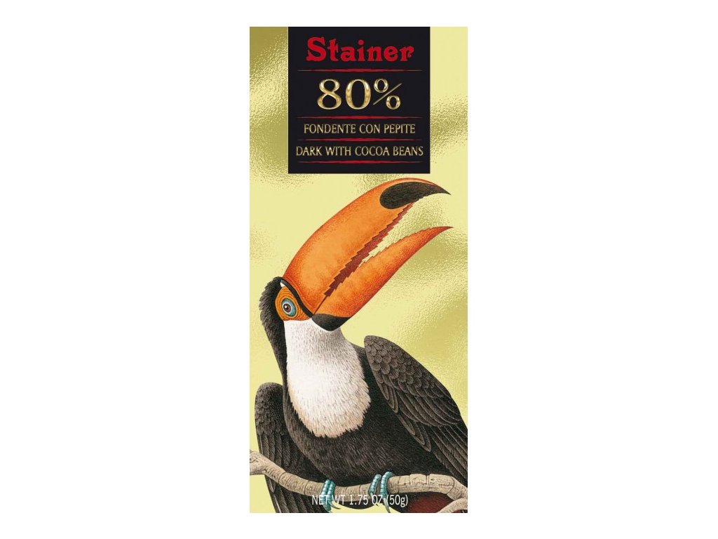 Stainer čokoláda extra hořká 80% s kakaovými nugetkami Tukan (con pepite di cacao) 50g